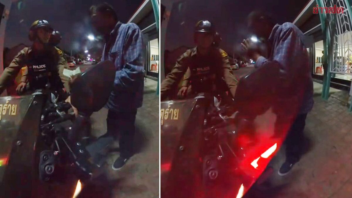 โดยในคลิปผู้โพสต์ซึ่งขี่รถจยย.สายตรวจมากับบัดดี้ แล้วจู่ๆ ก็มีชายคนหนึ่งลักษณะมึนเมาเรียกให้จอด ตำรวจจึงจอดสอบถามว่ามีเรื่องอะไรให้รับใช้