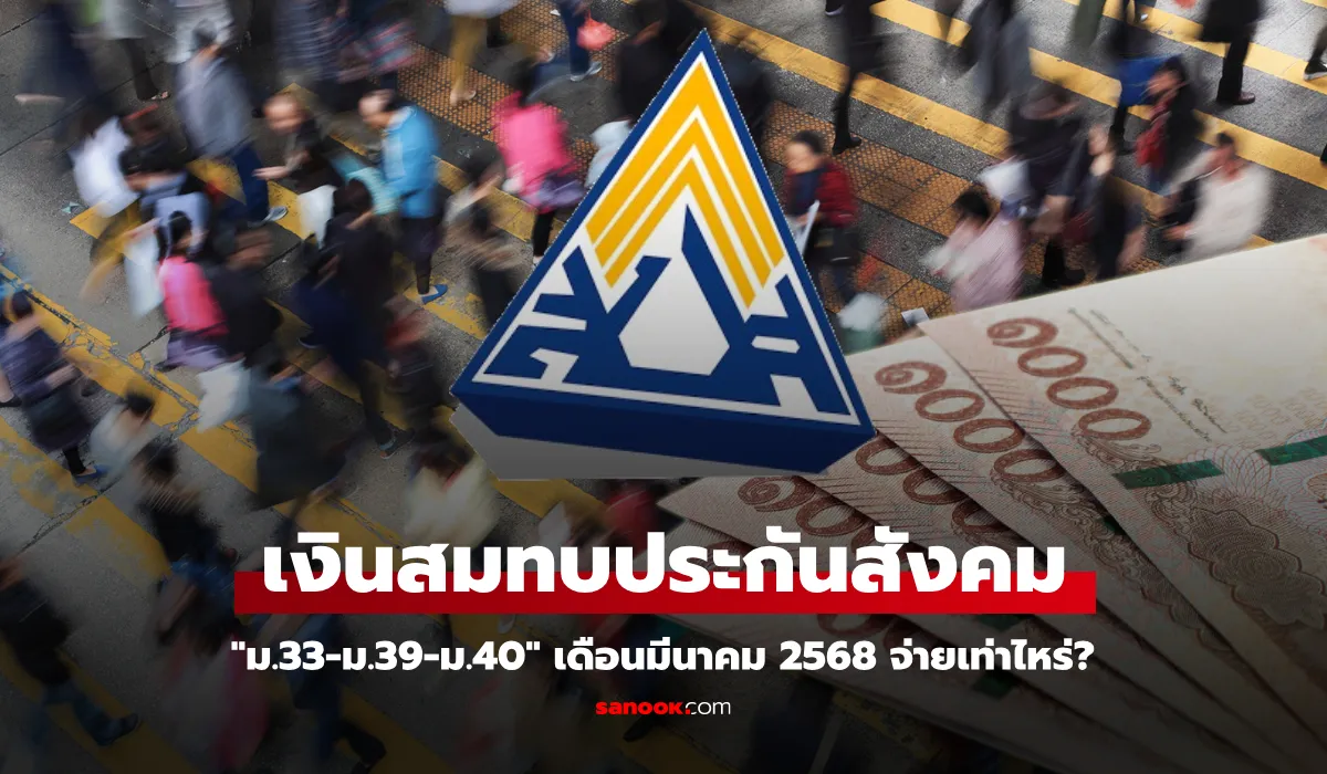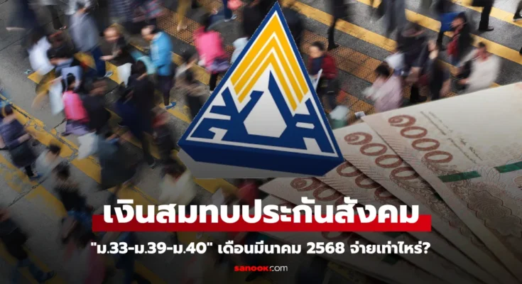อัปเดต เงินสมทบประกันสังคม 2568 ผู้ประกันตนมาตรา 33 ผู้ประกันตนมาตรา 39 และผู้ประกันตนมาตรา 40 ส่งเงินสมทบประกันสังคมงวดเดือนมีนาคม 2568 เท่าไหร่ มาหาคำตอบได้ที่นี่