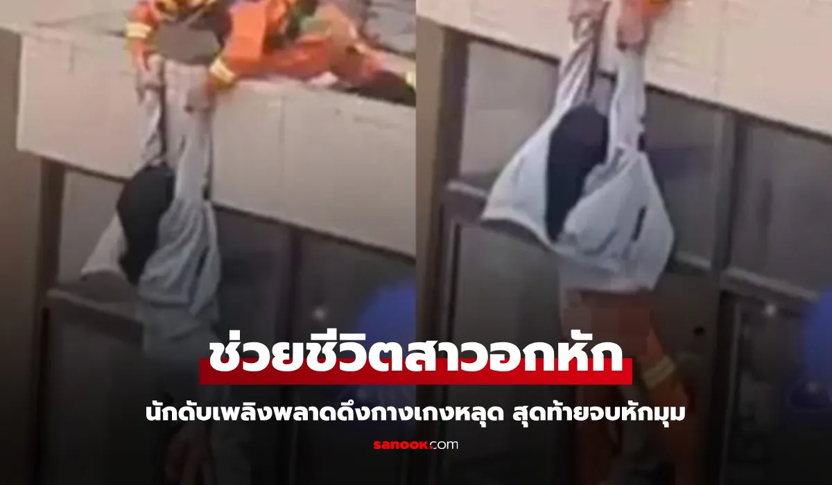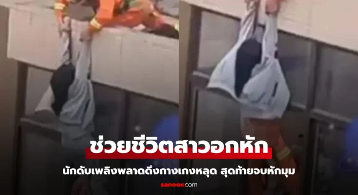 เจ้าหน้าที่ดับเพลิงคนหนึ่งรีบคว้าตัวเธอไว้ทันที ทำให้เธอห้อยอยู่กับผนังด้านนอกของอาคาร ขณะเดียวกัน เจ้าหน้าที่อีกคนรีบวิ่งไปยังชั้นล่างเพื่อเตรียมรับตัวเธอ แต่กลับเกิดเหตุการณ์สุด “ไม่คาดคิด” ขึ้น